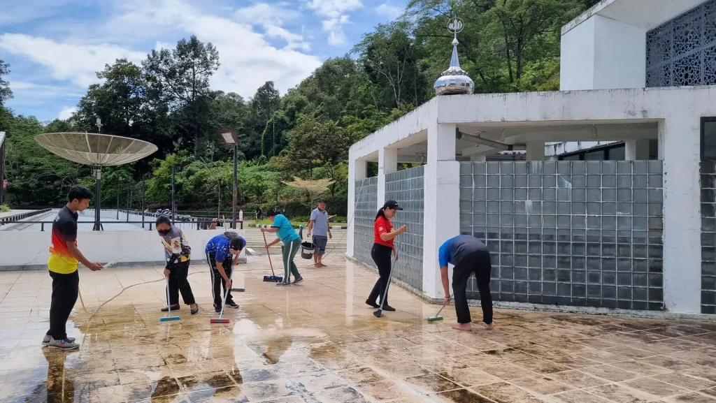 Teguh memaparkan bahwa, kegiatan ini diikuti oleh seluruh Kepala Sub Bidang, Pegawai dan Tenaga Pendukung Operasional (TPO) yang saling bekerja sama membersihkan sisi luar maupun dalam rumah ibadah tersebut.